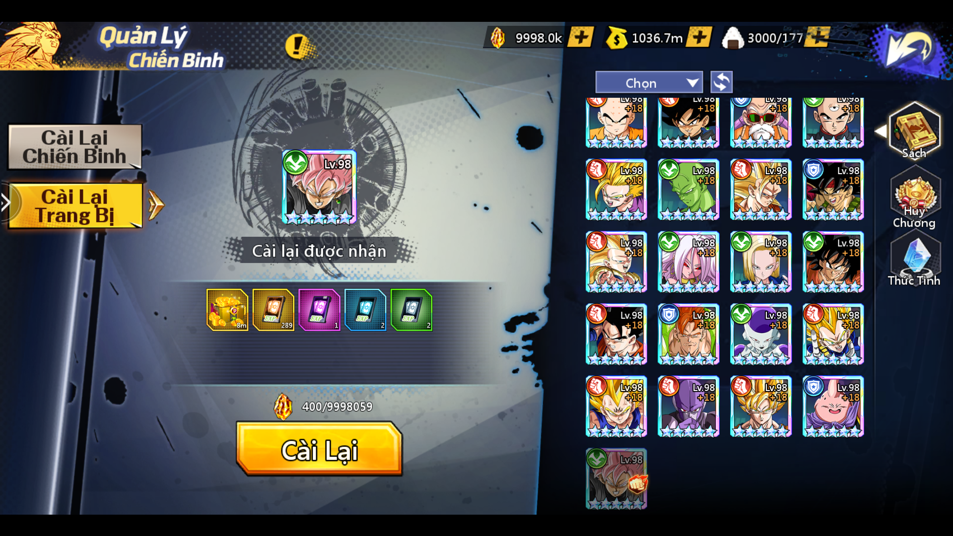 Cài Lại Trang Bị: Có thể cài lại và nhận lại toàn bộ nguyên liệu đã dùng để nâng cấp Trang Bị Chiến Binh