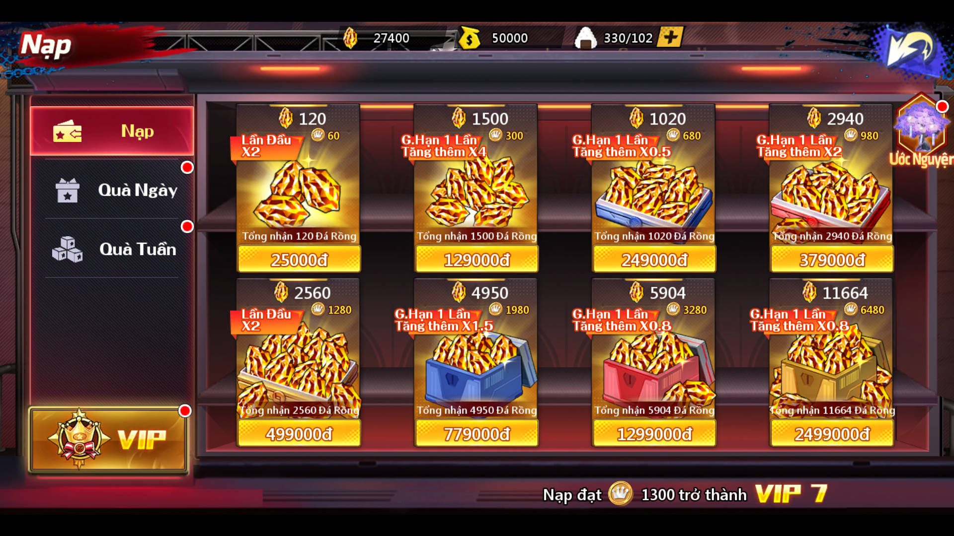 Khi Chiến Binh mua lần đầu, tất cả các gói vẫn được x2 Đá Rồng như trước.